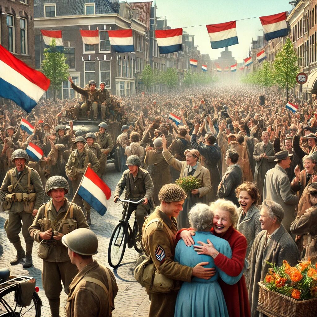Op 4 mei 1945 capituleerden de Duitse troepen in Nederland, waarmee een einde kwam aan 5 jaren van onderdrukking en bezetting. Die dag werd bekendgemaakt dat de Duitse bezetter zich had overgegeven aan de geallieerden, wat leidde tot massale vreugde onder de Nederlandse bevolking. In steden en dorpen vierden mensen hun herwonnen vrijheid met vlaggen, bloemen en optochten. Tegelijkertijd begon het land aan de zware taak van wederopbouw na jaren van oorlogsschade en tekorten. De bevrijding betekende ook het begin van de verwerking van diepe wonden, zowel persoonlijk als maatschappelijk. Deze historische gebeurtenis wordt jaarlijks herdacht en gevierd op 4 en 5 mei.