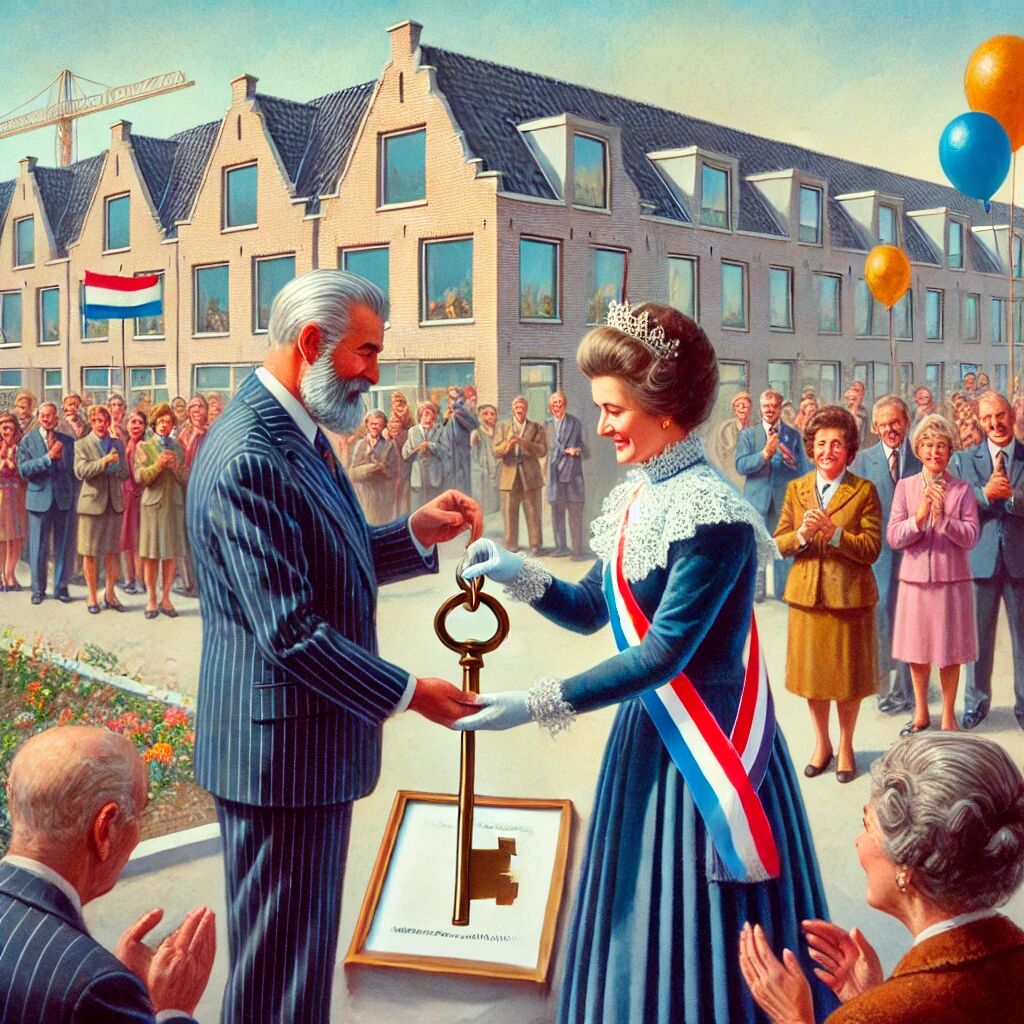 In 1982 overhandigde koningin Beatrix de sleutel aan de bewoner van de 5 miljoenste woning in Nederland, een belangrijke mijlpaal in de naoorlogse wederopbouw en uitbreiding van de Nederlandse woningvoorraad. Deze gebeurtenis markeerde niet alleen de groei van het aantal huizen, maar ook de voortdurende inspanningen om betaalbare en kwalitatieve woonruimte te creëren voor een steeds groter wordende bevolking. De feestelijke ceremonie symboliseerde het succes van het Nederlandse volkshuisvestingsbeleid. Het moment werd landelijk gevierd en was een teken van vooruitgang en stabiliteit in het moderne Nederland.