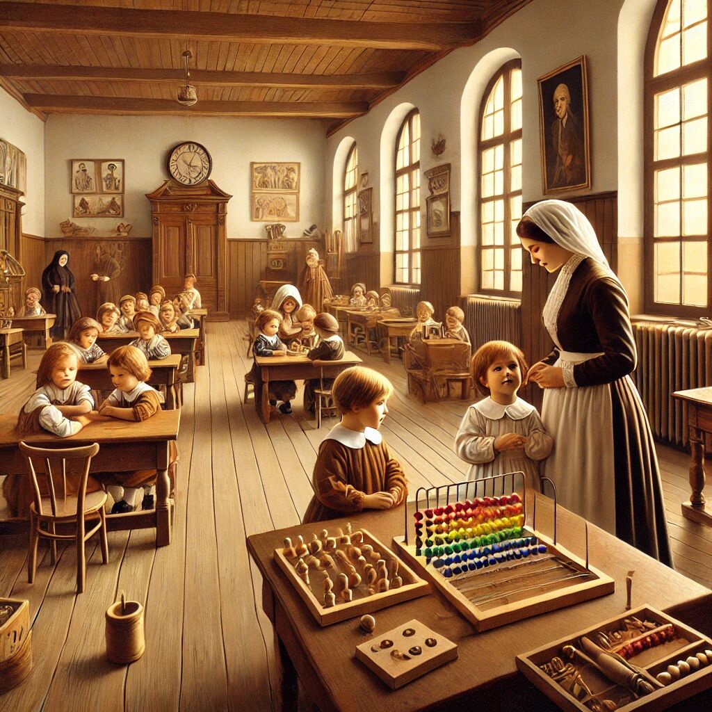 In 1907 opende Maria Montessori haar eerste school, Casa dei Bambini, in een arme wijk van Rome. Met haar revolutionaire aanpak richtte ze zich op de individuele ontwikkeling van het kind, waarbij zelfstandigheid en zelfontplooiing centraal stonden. Ze introduceerde speciaal ontworpen materialen en een leeromgeving die kinderen uitnodigde tot ontdekken en leren in hun eigen tempo. Dit vernieuwende onderwijssysteem inspireerde al snel scholen over de hele wereld. Tot op de dag van vandaag vormt de Montessori-methode een belangrijke basis voor modern onderwijs.