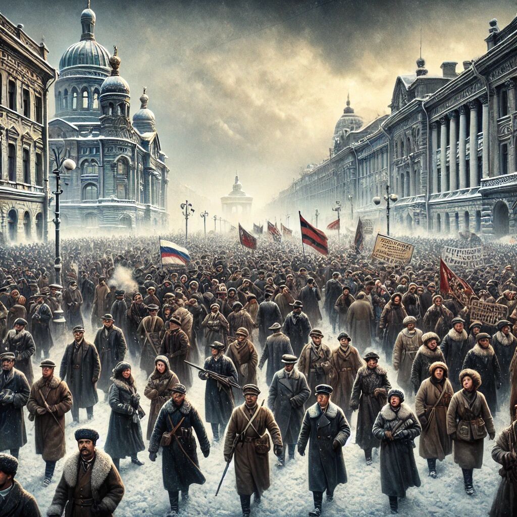 Op 8 maart 1917 (23 februari volgens de Juliaanse kalender) begonnen in St. Petersburg massale protesten die de start vormden van de Februarirevolutie in Rusland. Op Internationale Vrouwendag gingen duizenden vrouwen de straat op om te protesteren tegen voedseltekorten, slechte leefomstandigheden en de Eerste Wereldoorlog. Al snel sloten arbeiders, studenten en soldaten zich bij de demonstraties aan, waardoor de situatie escaleerde tot een brede opstand tegen het tsaristische regime. De protesten leidden uiteindelijk tot de abdicatie van Tsaar Nicolaas II en het einde van het Russische Keizerrijk. Deze gebeurtenissen markeerden het begin van een tumultueuze periode die zou uitmonden in de Oktoberrevolutie en de vorming van de Sovjet-Unie.
