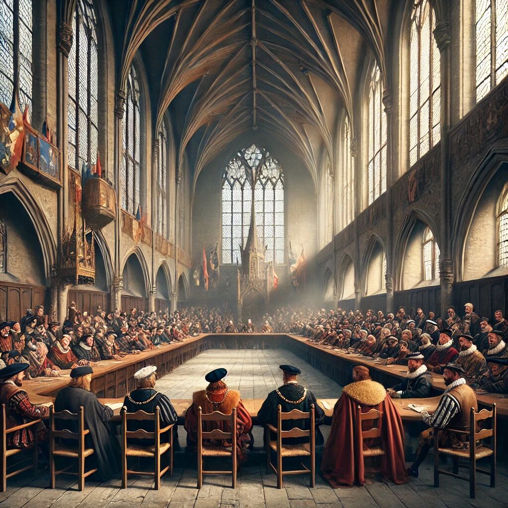 In 1464 werd de allereerste Staten-Generaal van de Nederlanden samengeroepen door Filips de Goede, hertog van Bourgondië. Dit gebeurde in Brugge en markeerde een belangrijk moment in de geschiedenis van de Lage Landen. De Staten-Generaal bestond uit vertegenwoordigers van de verschillende gewesten, zoals Vlaanderen, Brabant en Holland. Het doel was om belastinggeld goed te keuren voor de oorlogen van Filips, maar het zorgde ook voor een begin van samenwerking tussen de gewesten. Hoewel de invloed aanvankelijk beperkt was, legde dit evenement de basis voor de latere politieke eenwording van de Nederlanden. Het was een vroege stap richting de vorming van een gezamenlijke politieke identiteit.