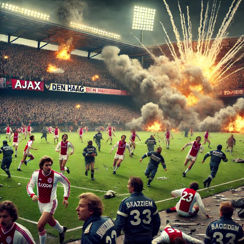 In 1983 werd de voetbalwedstrijd tussen Ajax en FC Den Haag opgeschrikt door explosies, die een dramatische sfeer creëerden in het stadion. Tijdens deze wedstrijd werden zware knallen gehoord, afkomstig van vuurwerk of geïmproviseerde explosieven die door toeschouwers waren binnengesmokkeld. Het incident zorgde voor paniek en bezorgdheid onder het publiek en leidde tot discussies over de veiligheid in voetbalstadions. Hoewel er geen dodelijke slachtoffers vielen, werden meerdere mensen gewond en was de impact groot. Het incident leidde tot strengere veiligheidsmaatregelen en controles bij toekomstige wedstrijden om dergelijke gebeurtenissen te voorkomen. Het was een donkere dag in de Nederlandse voetbalgeschiedenis.