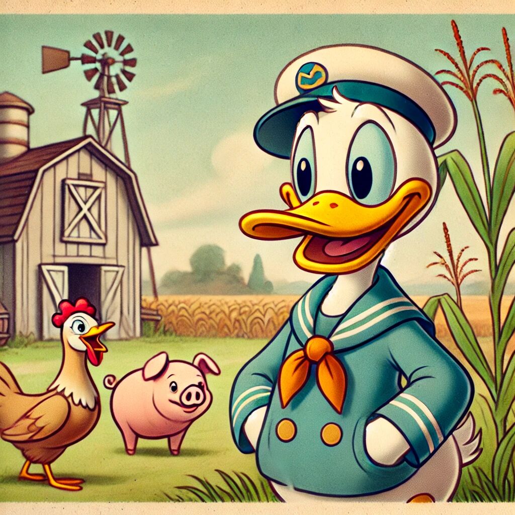 Op 9 juni 1934 maakte Donald Duck zijn debuut in de tekenfilm The Wise Little Hen, een korte animatiefilm van Disney. In dit verhaaltje helpt Donald, samen met zijn vriend Peter Pig, niet mee met het planten en oogsten van maïs, omdat ze doen alsof ze buikpijn hebben. Als straf krijgen ze geen deel van de oogst en blijven ze met lege handen achter. Donald viel meteen op door zijn temperament, zijn kenmerkende stem en zijn grappige pechmomenten. Na deze eerste verschijning werd hij al snel een van Disney’s populairste en meest herkenbare personages.
